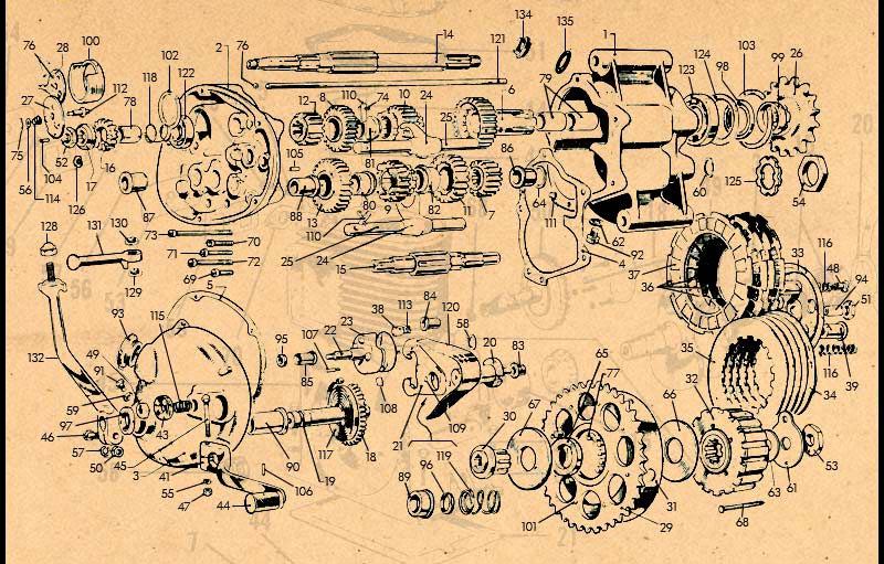 NOTE! SEE 3-Speed PARTS LIST FOR STANDARD KICKSTARTER ASSEMBLY